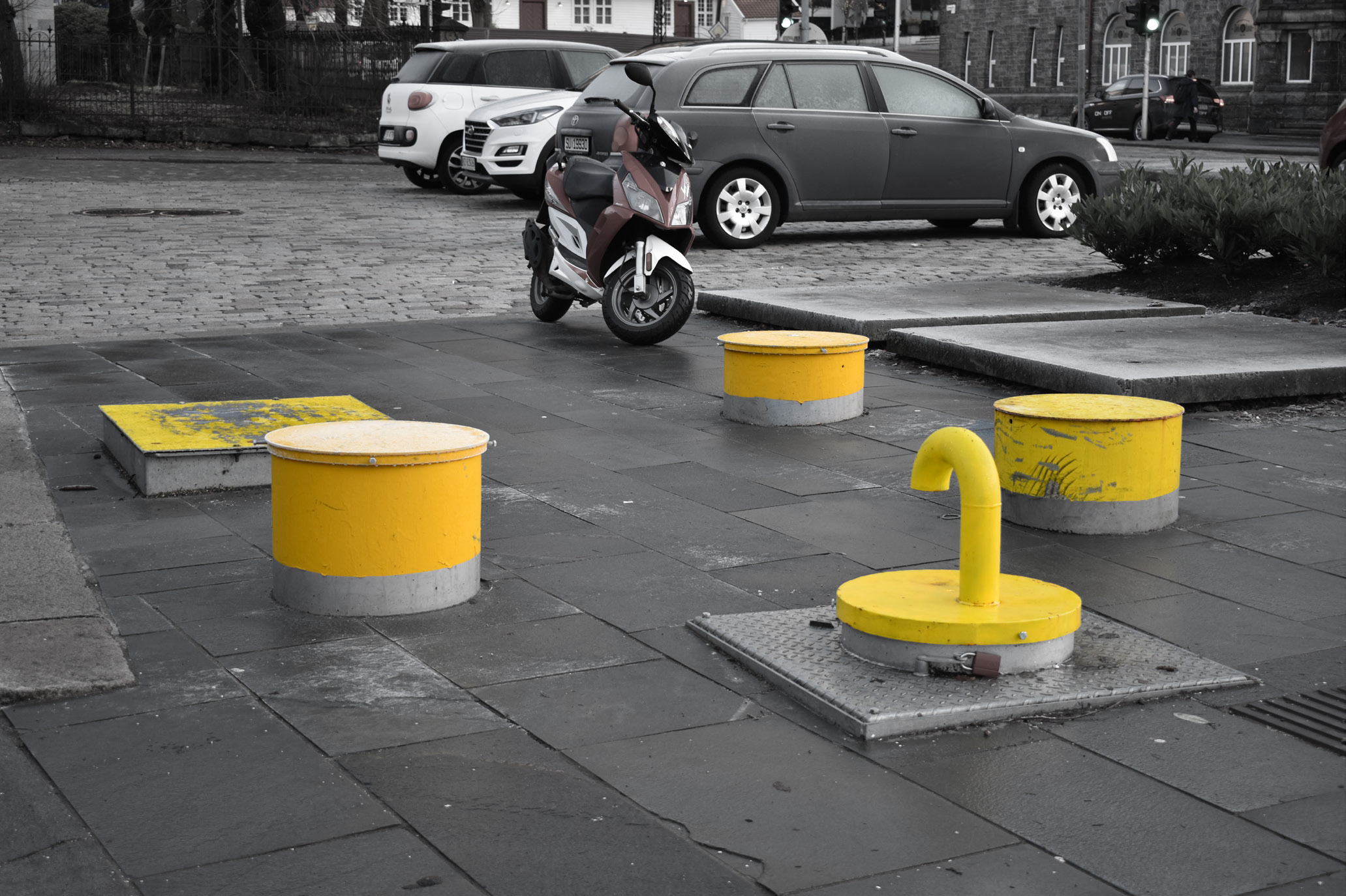 While walking through Bergen a mark in the ground invites me to jump over it. A choice is given to play with it or ignore it.