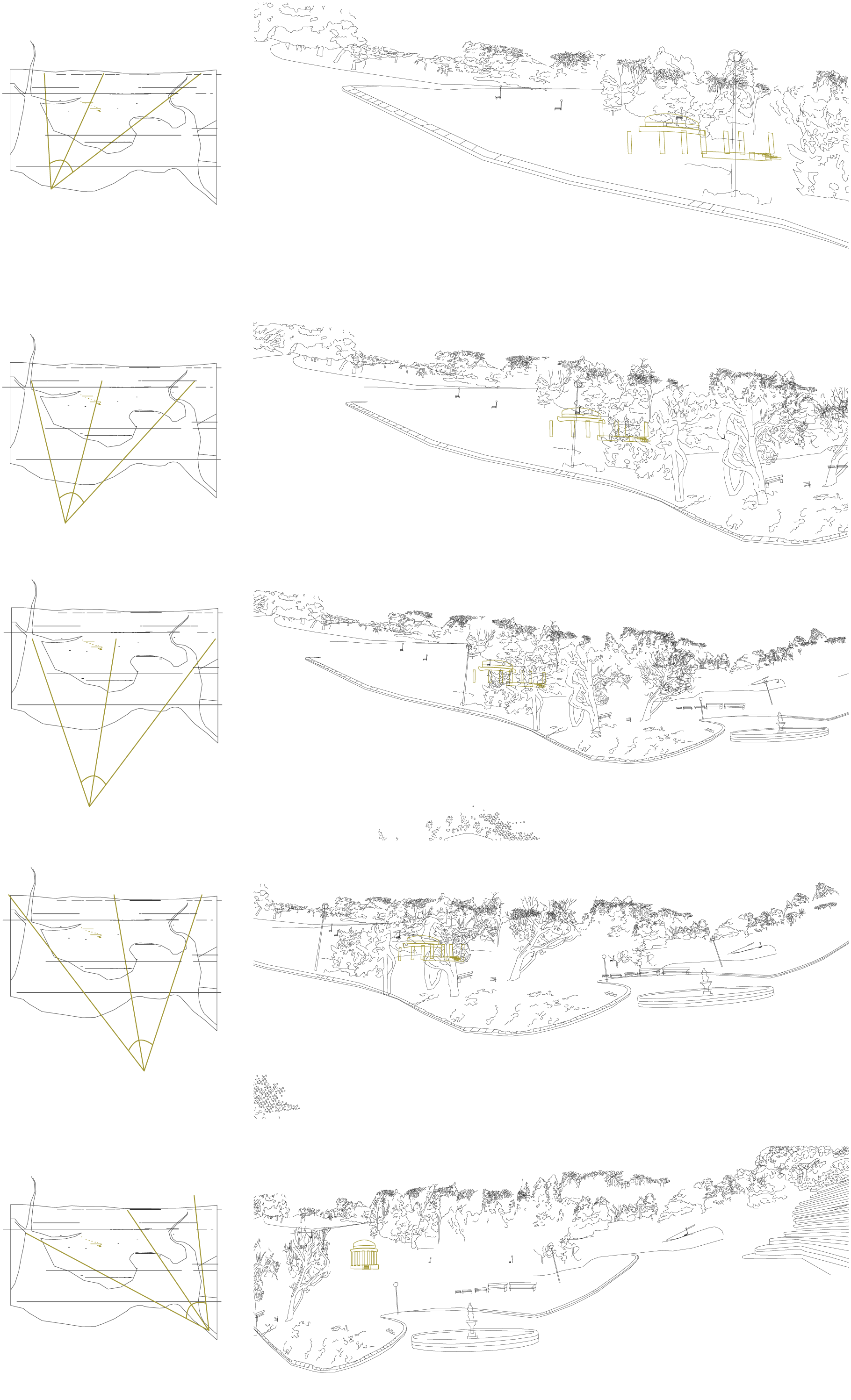 Altering the object itself revealed the application in designing architecture and the implied landscape. The park itself acts as a hidden or secluded green space within the city that offers the feeling of having been transported to a new space. Then why not go further? By creating more dimension and more interest within the space. The privileged view is suddenly broken up and a new interest appears. This opens the idea and potential of finding novel places within places or discovering new spaces that only appear through movement and would not interact with a static position.