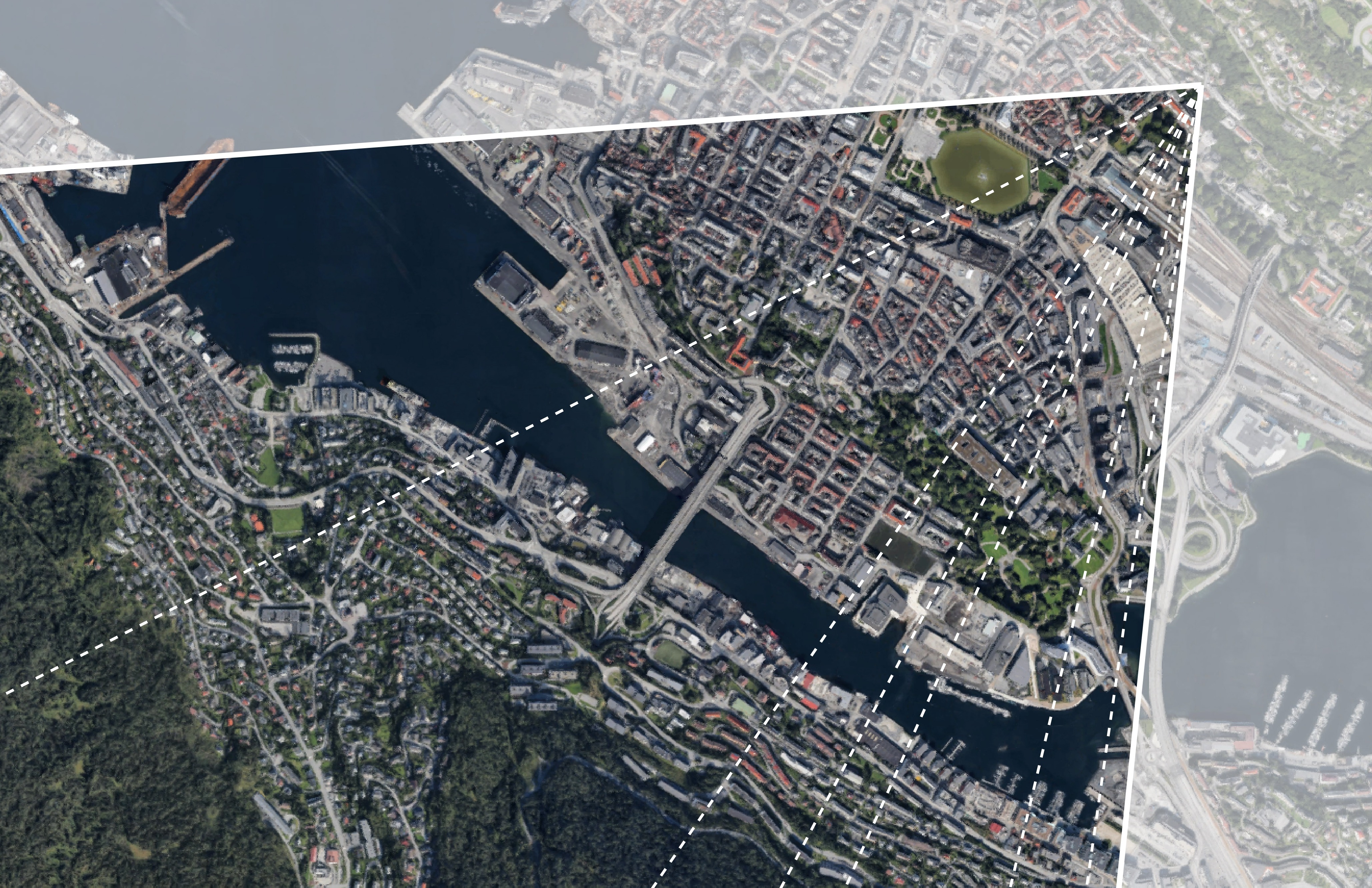 Our movement through space has a profound effect on the way that we perceive our near environment as well as the larger context. The site in Bergen, which this research focuses on, is characterised by an elevated position that overlooks the city. The built form of the site, which consists of surrounding houses and various levels, contribute to the perception of the city. As each person travels through the site, a narrative is formed that informs an individual experience of the city. By its very nature, the city reveals itself in certain ways as one moves between locations. With the addition of forms that emphasize and exaggerate what is already existing in the built form, there is an opportunity to dramatize the city through the sequences that it is perceived. By forcing perspectives onto the city, the view and experience are altered. It is possible to connect people to the city in a deeper way by carefully orchestrating the ways in which the city is revealed and viewed. Through these additions to a site, new emotional experiences can be achieved for the user. The predominant goal is to encourage movement and exploration within the urban realm. Through enhancements to the built form that evoke intrigue, a desire to move forward can be achieved.