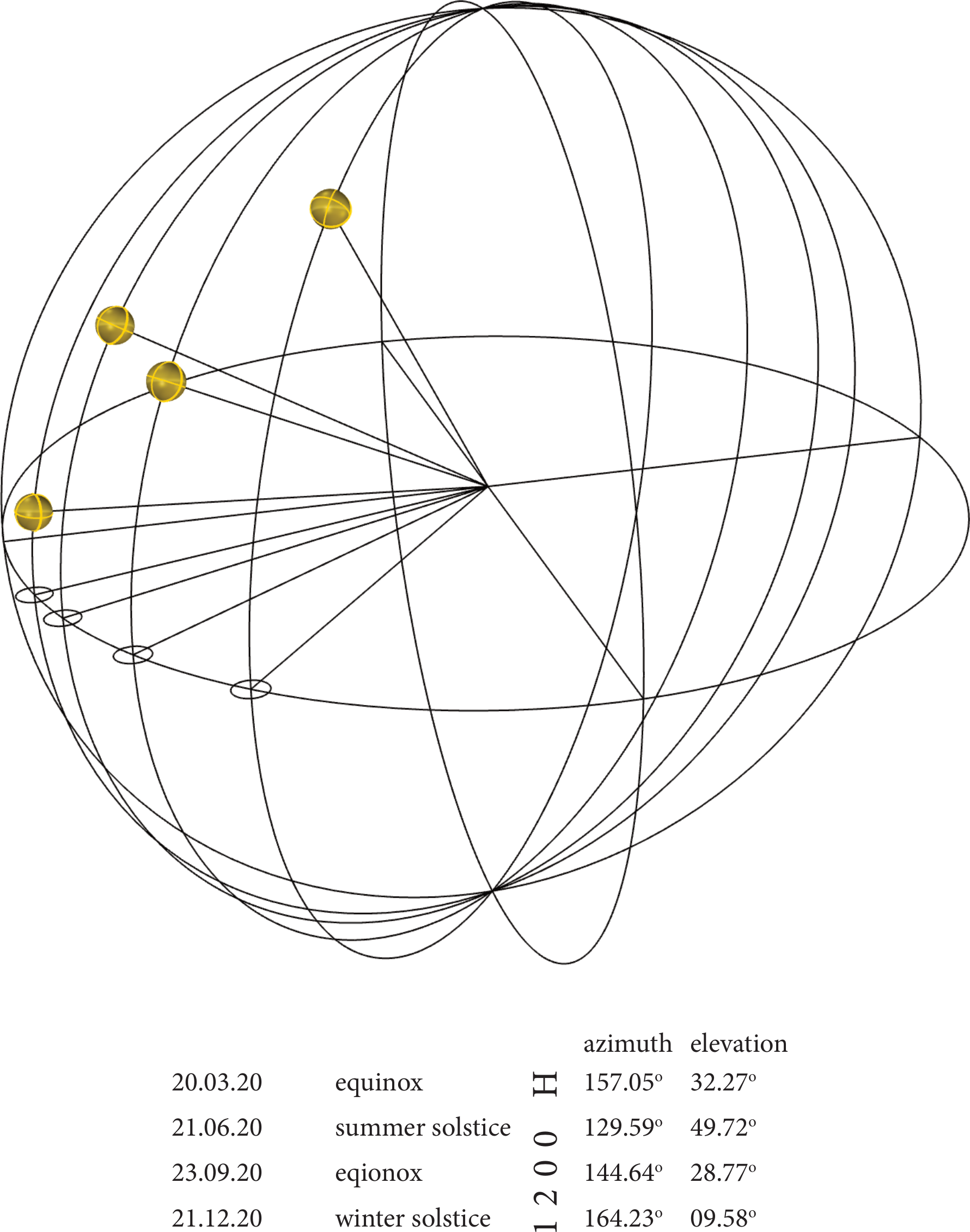 By using the solstice and equinox an awareness is also given to the seasons changing. The reference points are experienced in their singularity or as a route and thereby encouraging walking and exploring. The route and its navigation properties are communicated through the sun position and the related specific shadow.